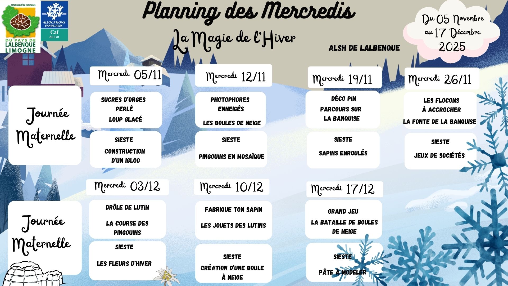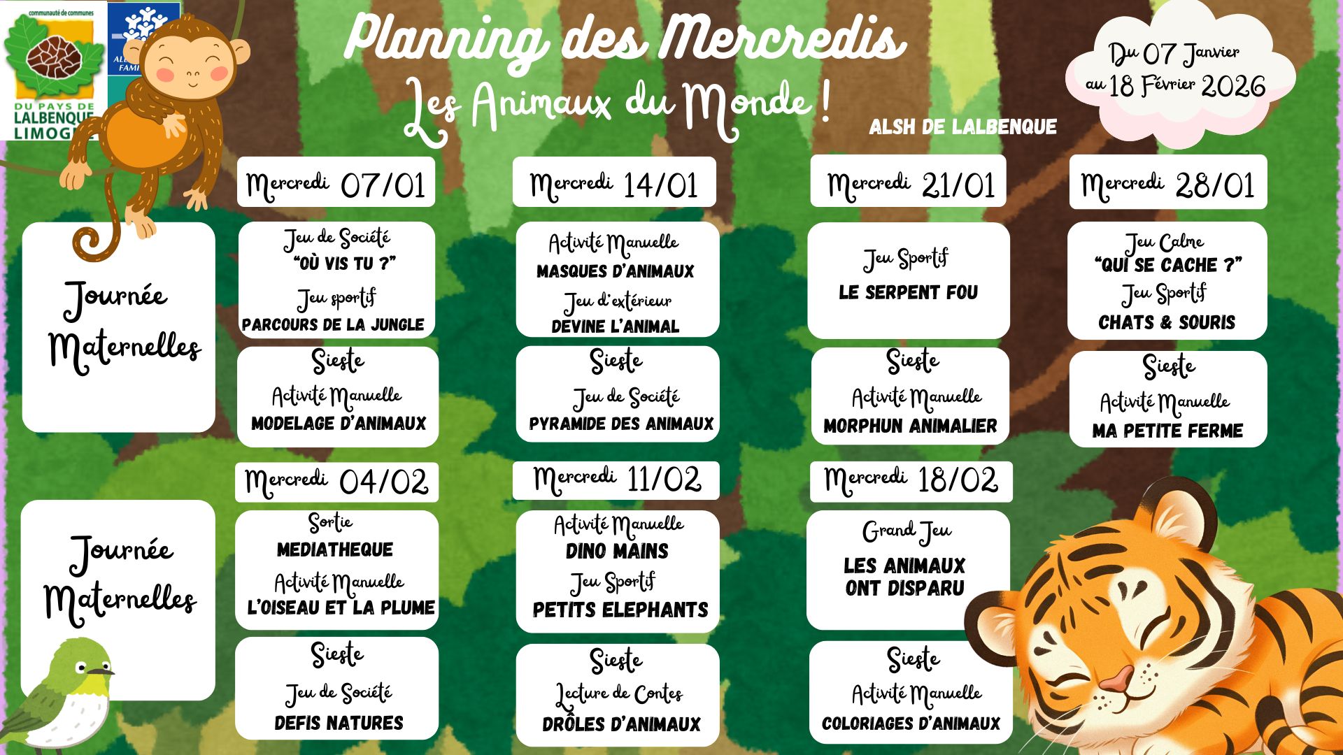 Planning des vacances - classes maternelles