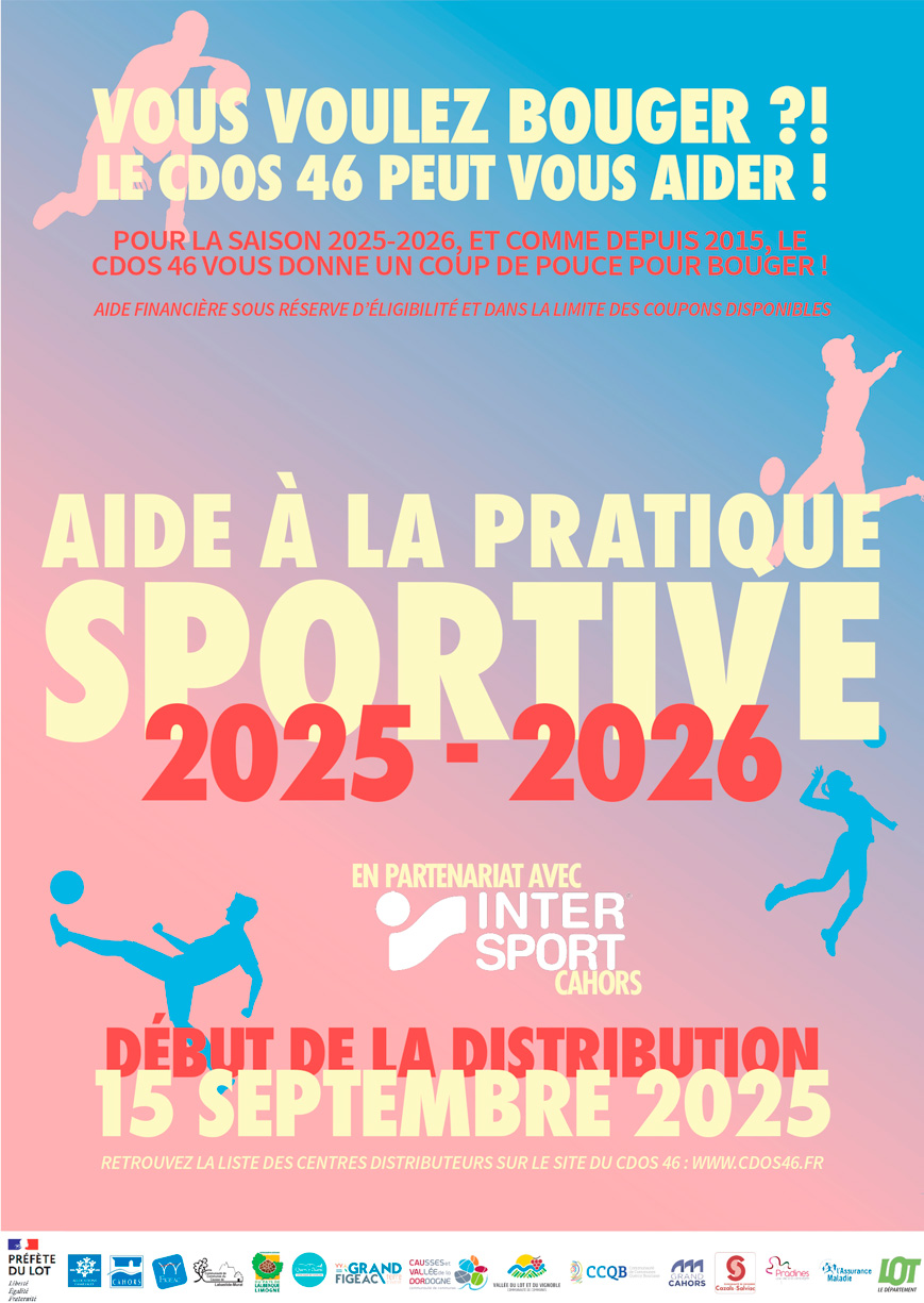 Aide à la pratique sportive : pour la saison 2025-2026, et comme depuis 2015, le Comité Départemental Olympique et Sportif du Lot (CDOS 46) vous donne un coup de pouce pour bouger !