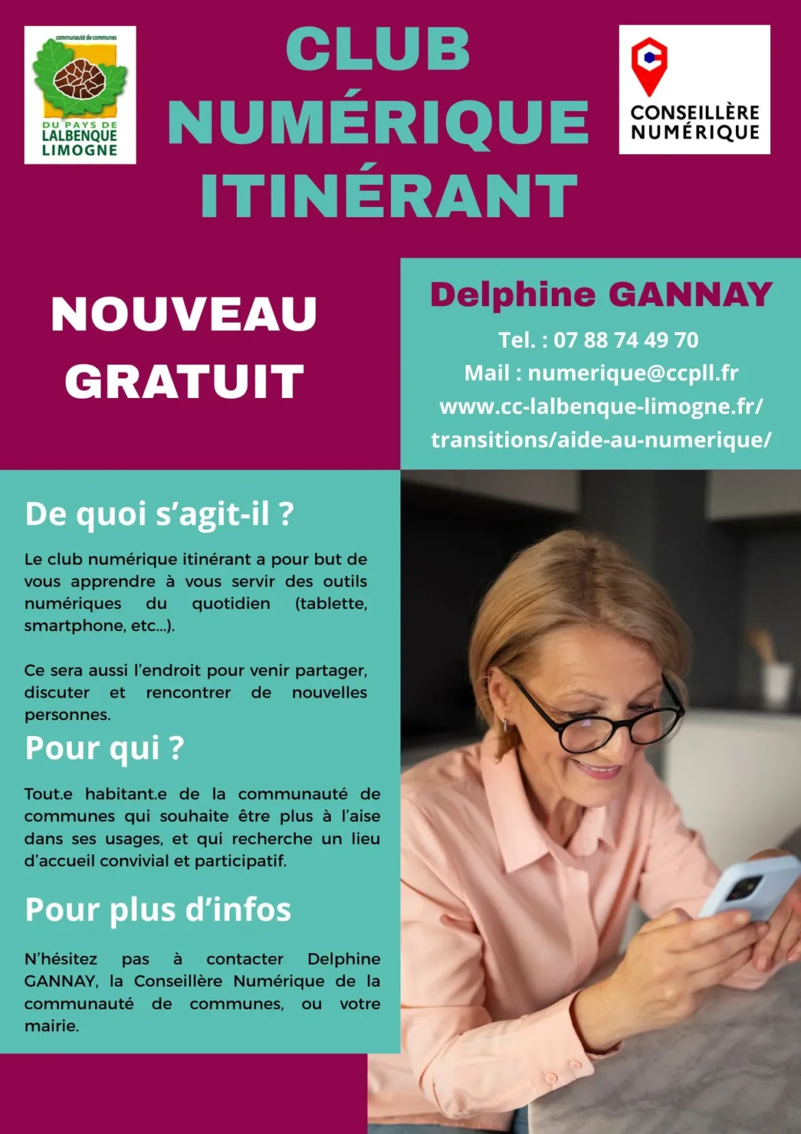 Le Club Numérique Itinérant sera animé par Delphine Gannay, Conseillère Numérique de la CCPLL.