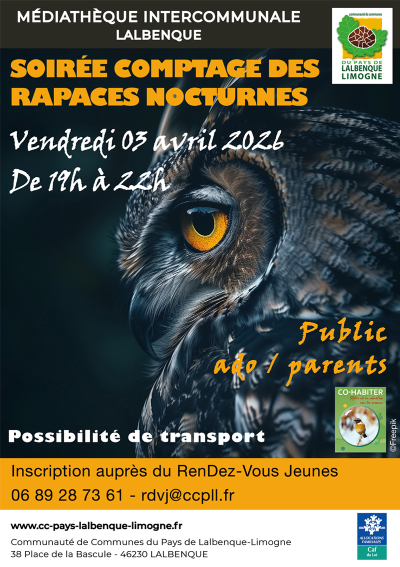 Le RenDez-Vous Jeunes vous propose une soirée comptage des rapaces nocturnes, le vendredi 03 avril 2026, de 19h à 22h. Public ado-parents.