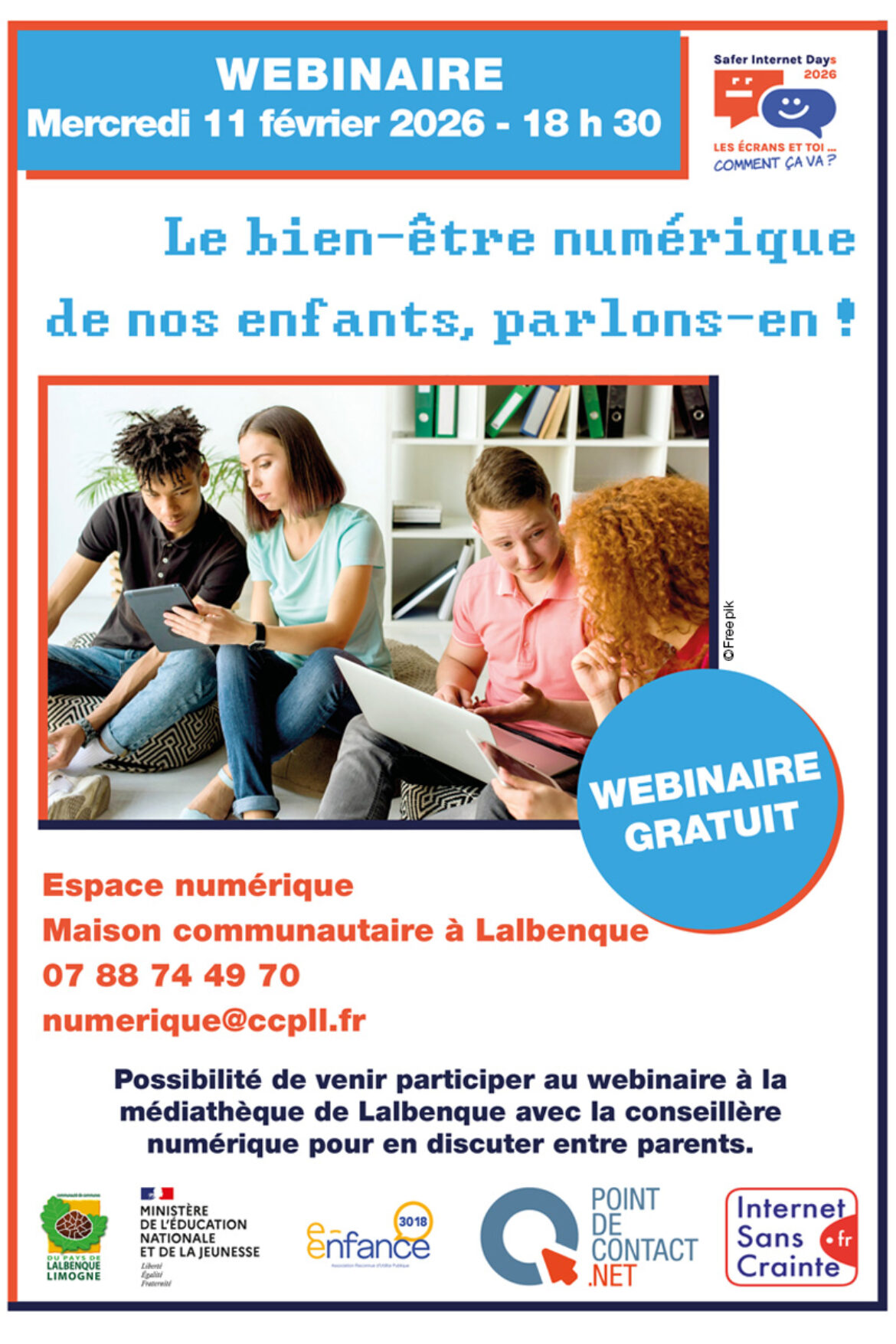 Gratuit, il se déroulera mercredi 11 février 2026, à 18h30, à l'espace numérique de la Maison communautaire de Lalbenque. Possibilité de venir participer au webinaire à la médiathèque de Lalbenque, avec la Conseillère numérique pour en discuter entre parents.
