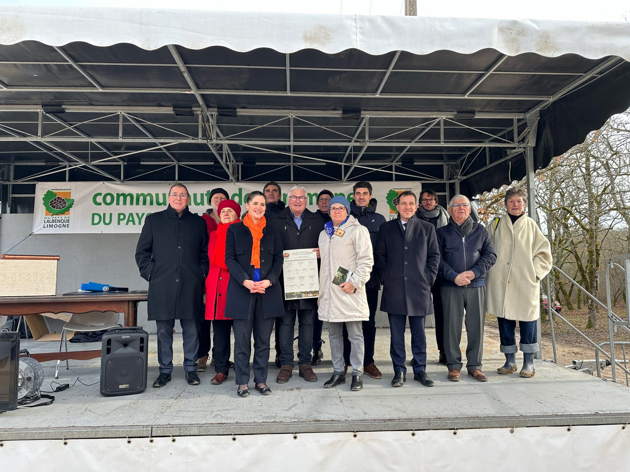 Afin de marquer ce moment, La Communauté de Communes a fait fabriquer une pierre gravée à la date de ce jour, y insérant un document avec les signatures des partenaires afin de marquer la tradition . Celle-ci sera positionnée dans un muret afin de marquer les esprits de ce moment aussi mémorable qu’agréable.