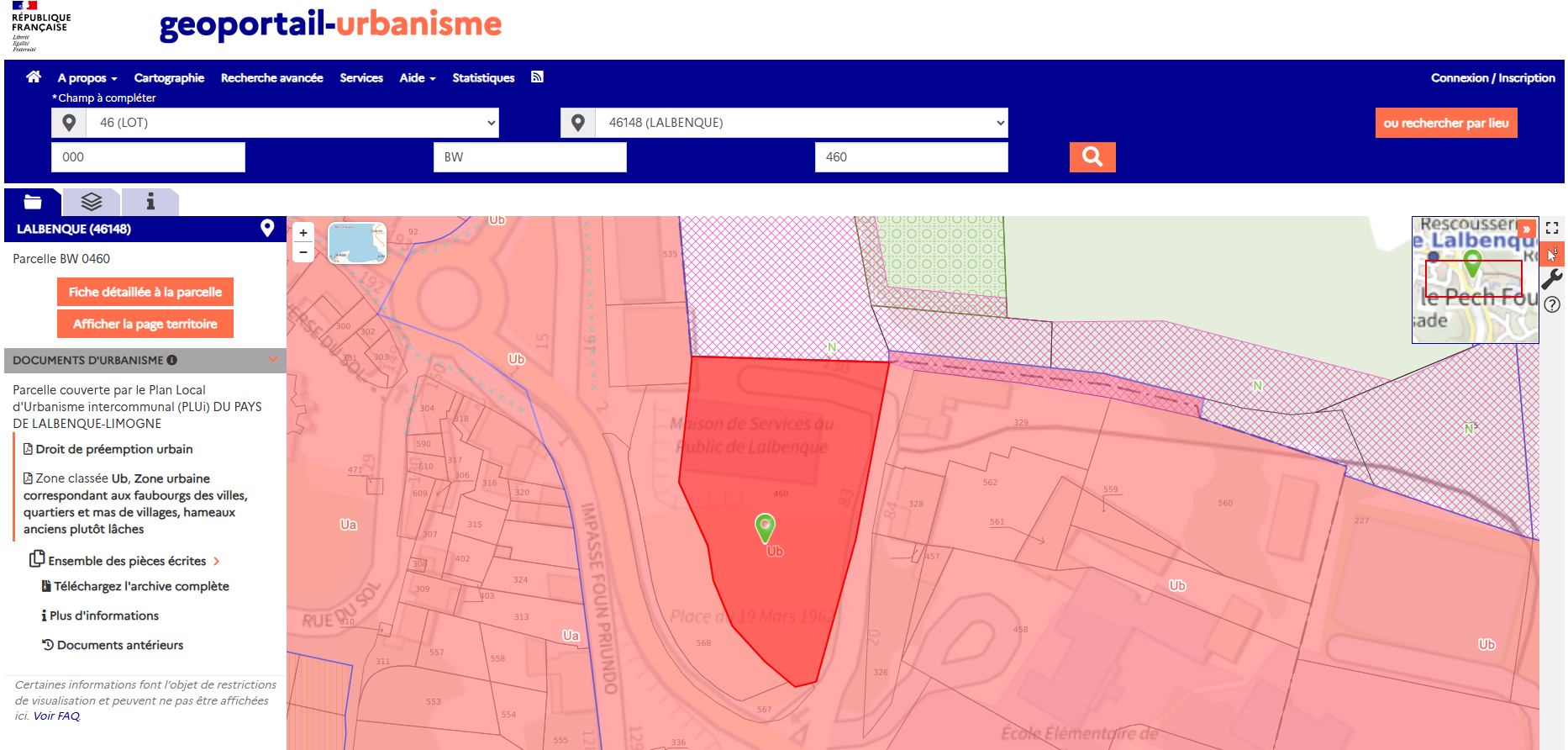 Il vous suffit de connaître le nom de la commune, la section et le numéro de la parcelle concernée et se rendre sur geoportail-urbanisme.gouv.fr