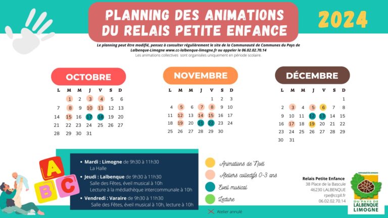 Le Relais Petite Enfance propose, en période scolaire, des animations petite-enfance organisées sur 3 lieux :